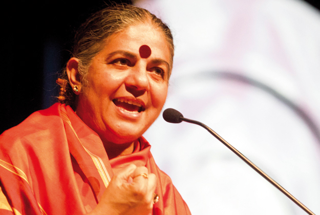 Vandana Shiva veste tessuti colorati, ha un grande sorriso, è vegetariana e si batte per ridiscutere le politiche agricole e alimentari. E’ indiana, attivista e ambientalista; nel 1993 ha ricevuto il Right Livelihood Award ed è ambasciatrice dell’Expo Milano. E’ stata ospite al Festival Internazionale dei Beni Comuni di Chieri (TO) per ricordare quanto sia importante affidarsi alle persone, alle comunità e alla Madre Terra, tornare alle economie di piccola scala come unica possibilità di sopravvivenza.