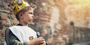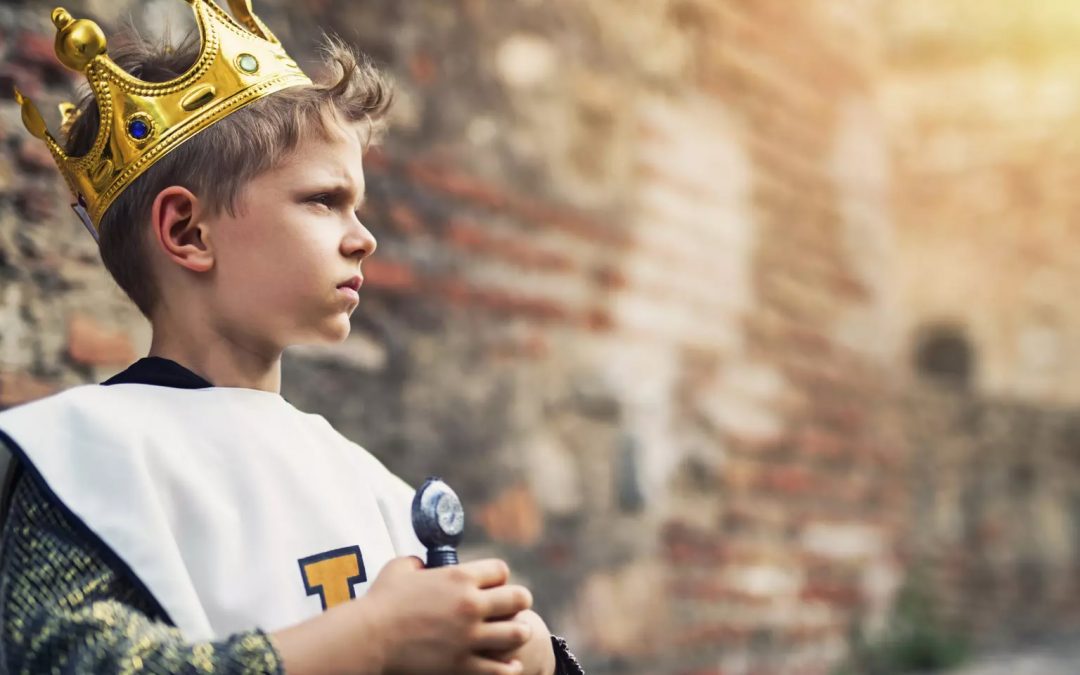 Portrait of young king at the castle walls